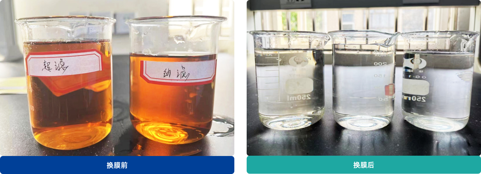 福州某填埋场使用某品牌纳滤膜运行期限一年时间,出水水质出现发黄情况,截留率大幅度下降,无法符合现场运行条件,于2024年06月份更换HOWIE纳滤膜,目前运行稳定,水质可满足业主需求。